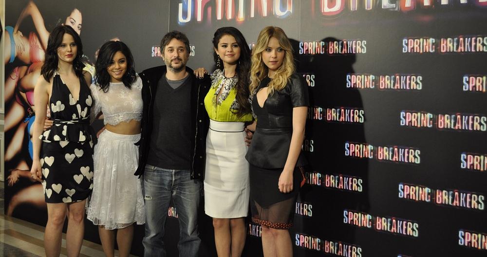 Con motivo del estreno en los cines de España de Spring Breakers, hoy nos han visitado su director Harmony Korine y las cuatro protagonistas de la película Vanessa Hudgens, Selena Gomez, Ashley Benson y Rachel Korine.