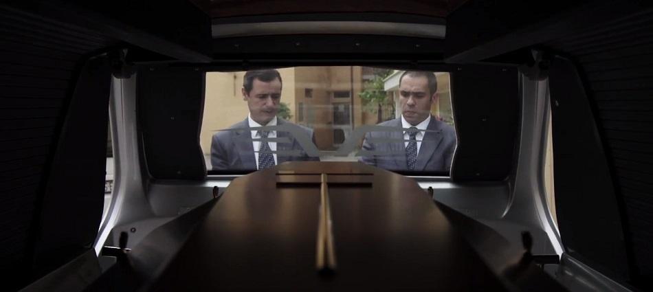 Unidos por esa meta común: el traslado de Francesco Spadea, éste se esboza como el tercer pasajero en cuestión. Una presencia ausente que dentro de su féretro parece ir contemplando los paisajes de su tierra natal a través de la ventana trasera del vehículo.